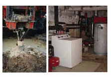 Captadores verticales: La captación vertical usa sondas geotérmicas semi-profundas constituidas de tubos en U en polietileno en los cuales circula una solución agua + anti congelamiento en circuito cerrado. La temperatura del suelo aumenta con la profundidad, a 100 m está entre 10°C a 18°C, pero ésta varía según la naturaleza de los suelos y la presencia de reservas acuíferas.