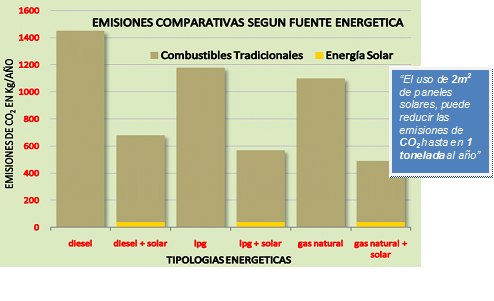 Nota: Un sistema solar produce aproximadamente sólo 40Kg./Año de CO₂ considerando el consumo eléctrico de sus diversos componentes.