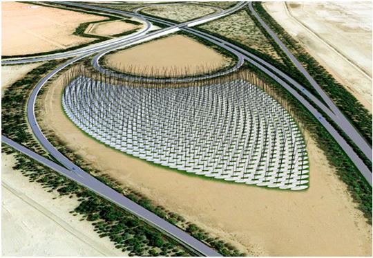 La innovación tecnológica va más allá, y en un concurso realizado en Masdar (ciudad ecológica diseñada y ubicada en Abu Dhabi para ser sustentable y autoabastecida), la firma Atelier DNA ganó el segundo lugar presentando un creativo proyecto: Un parque eólico a base de tallos de fibra de carbono, los cuales minimizarían los inconvenientes de su antecesor aerogenerador eólico.